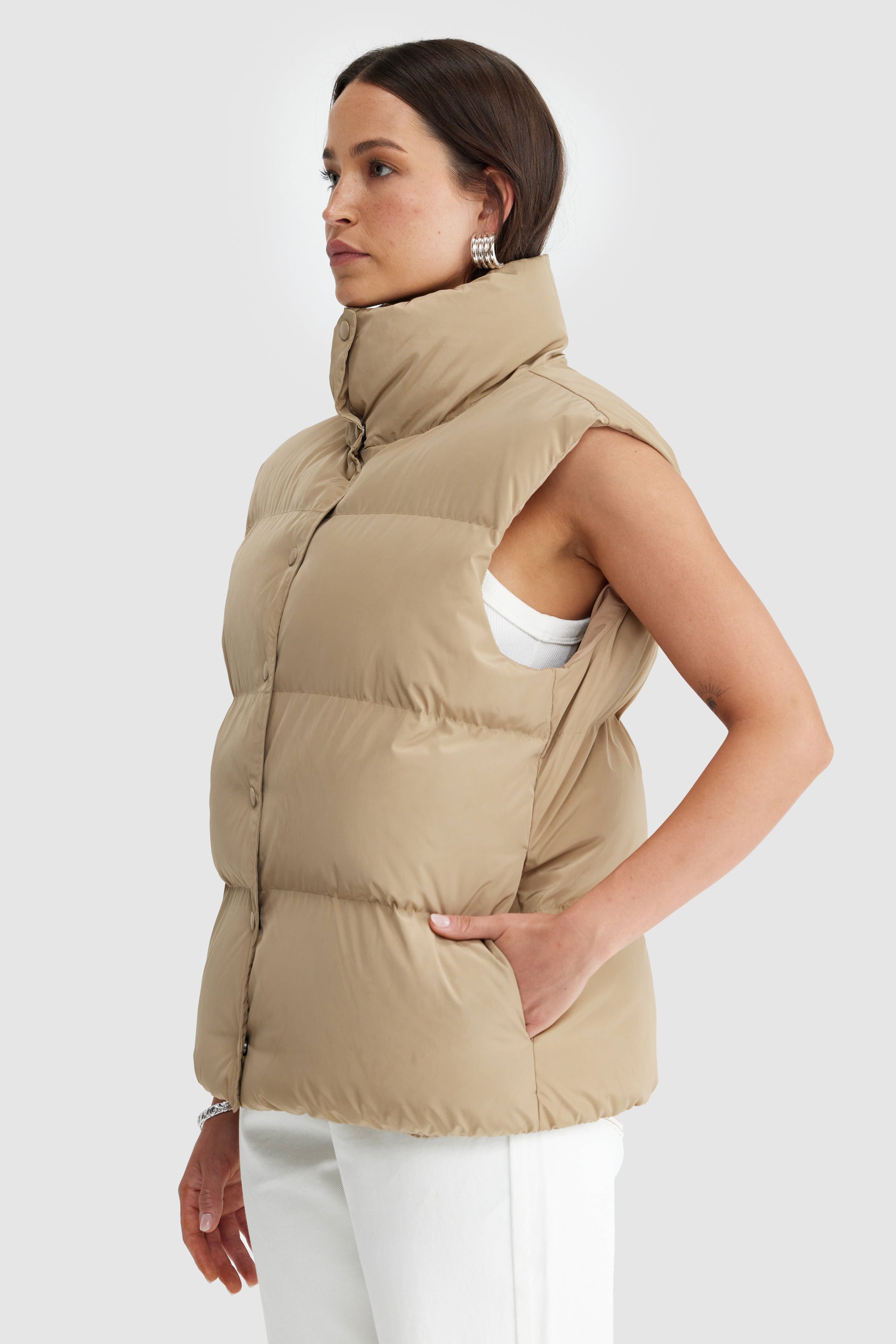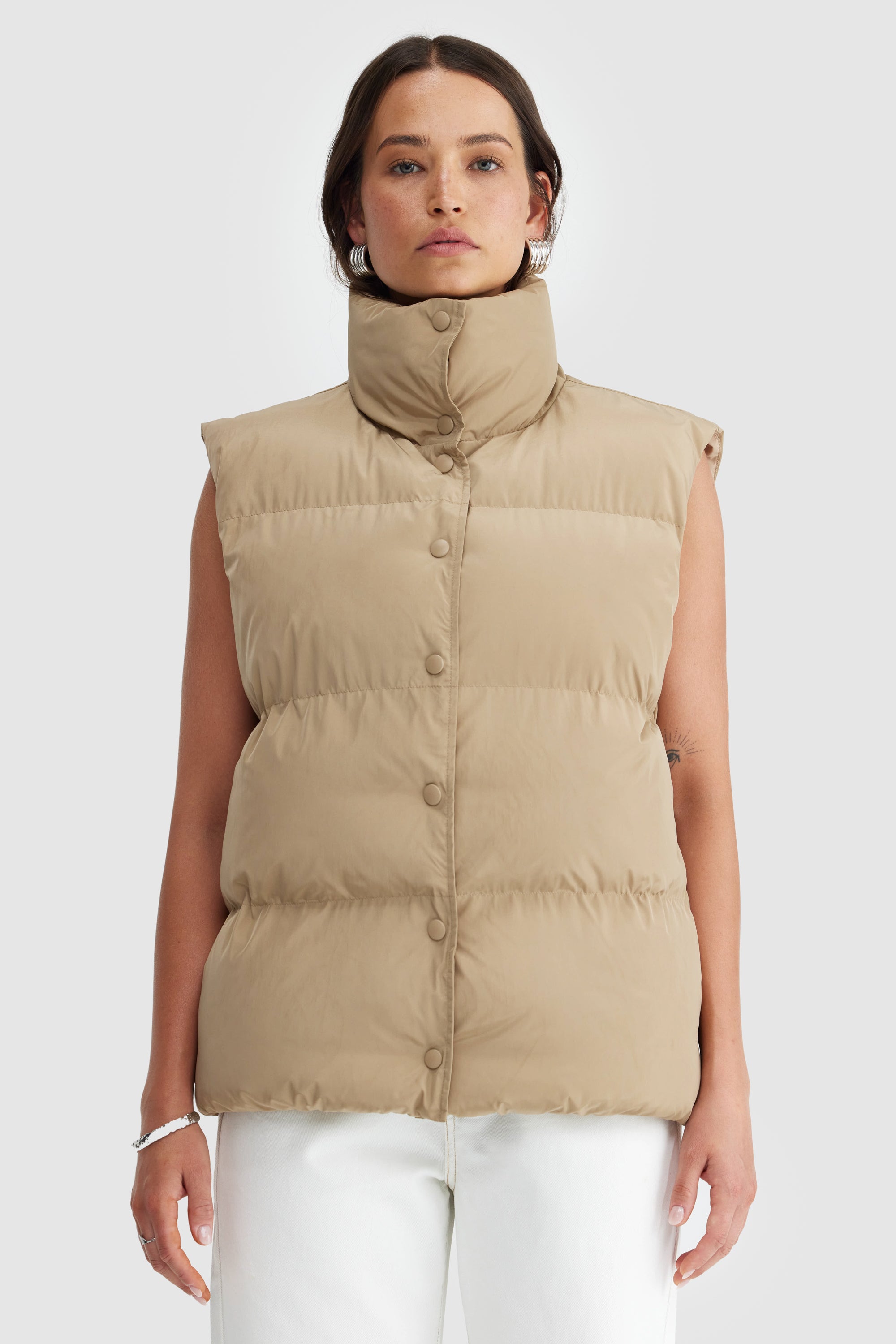 The Montana Puffer Vest is the perfect balance of refined style and functional warmth. Designed for easy layering, it features a clean and relaxed silhouette with a button closure for a streamlined finish. A versatile winter essential for the cooler months.
