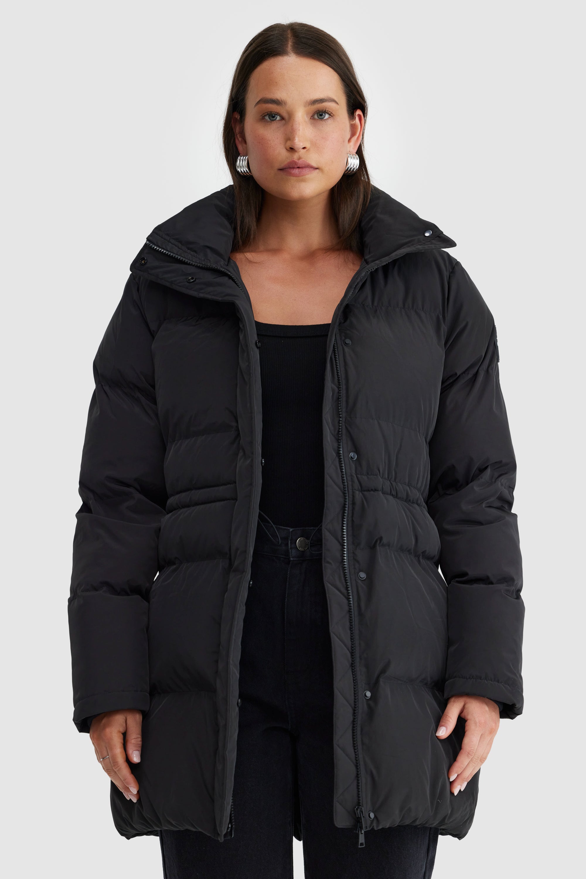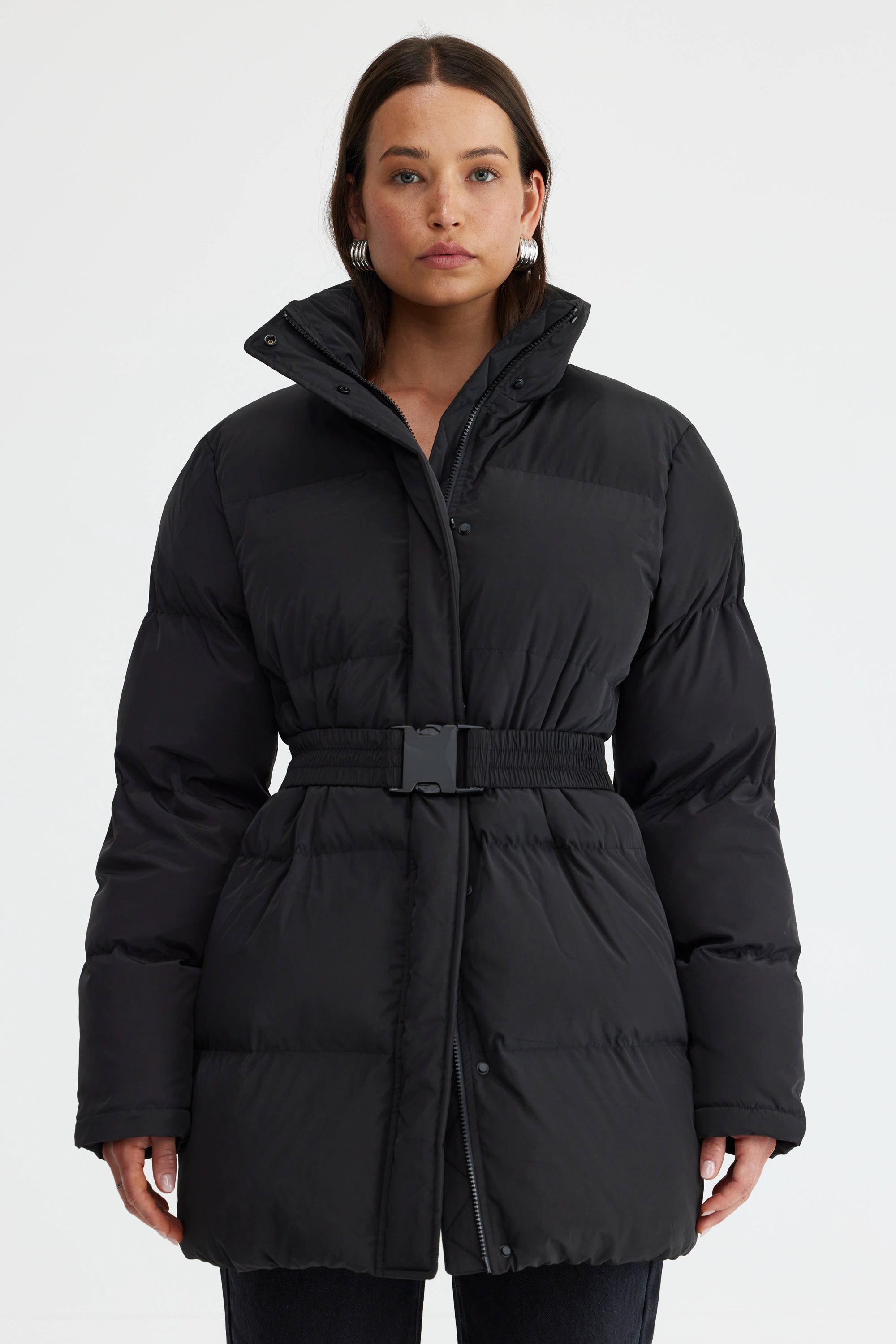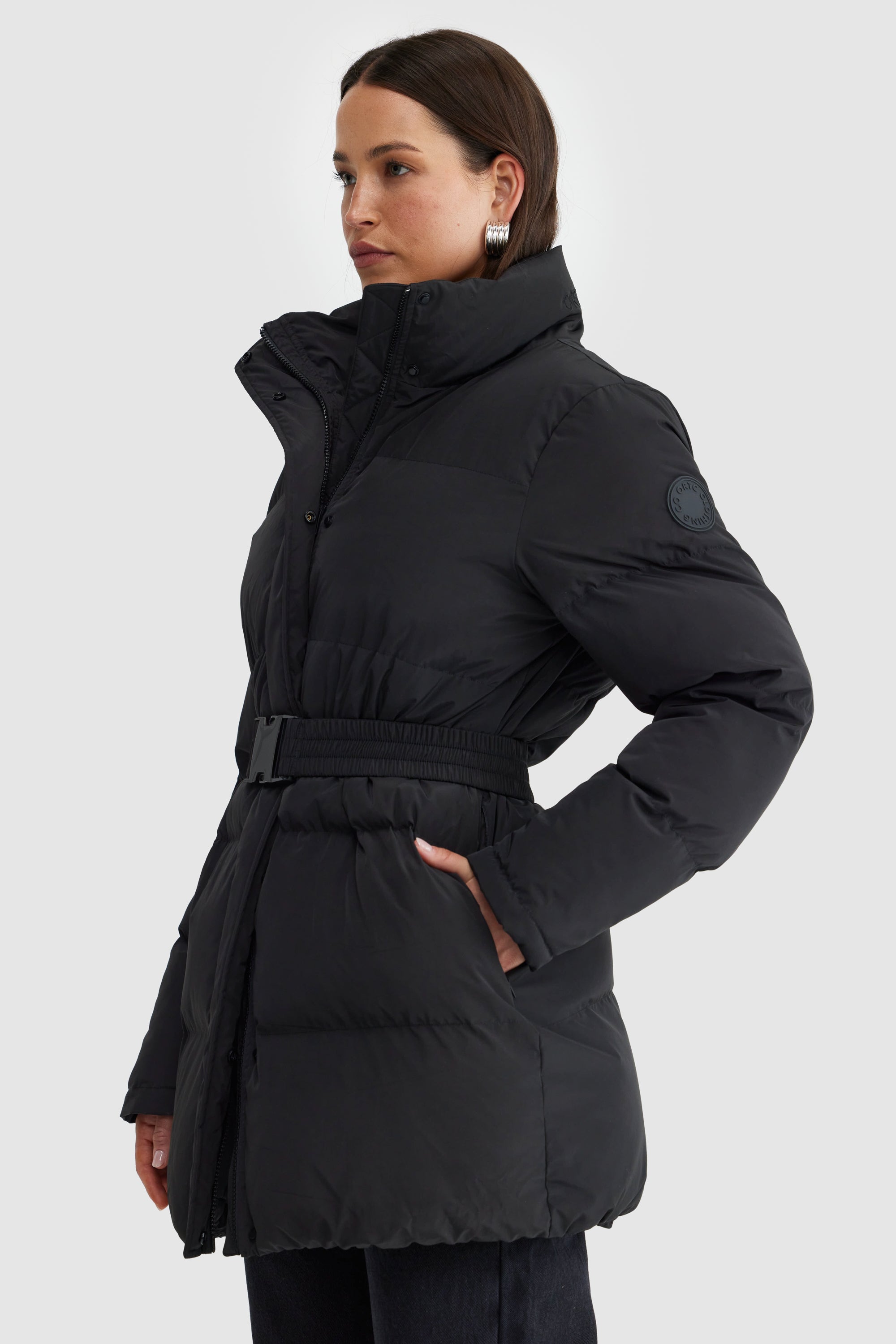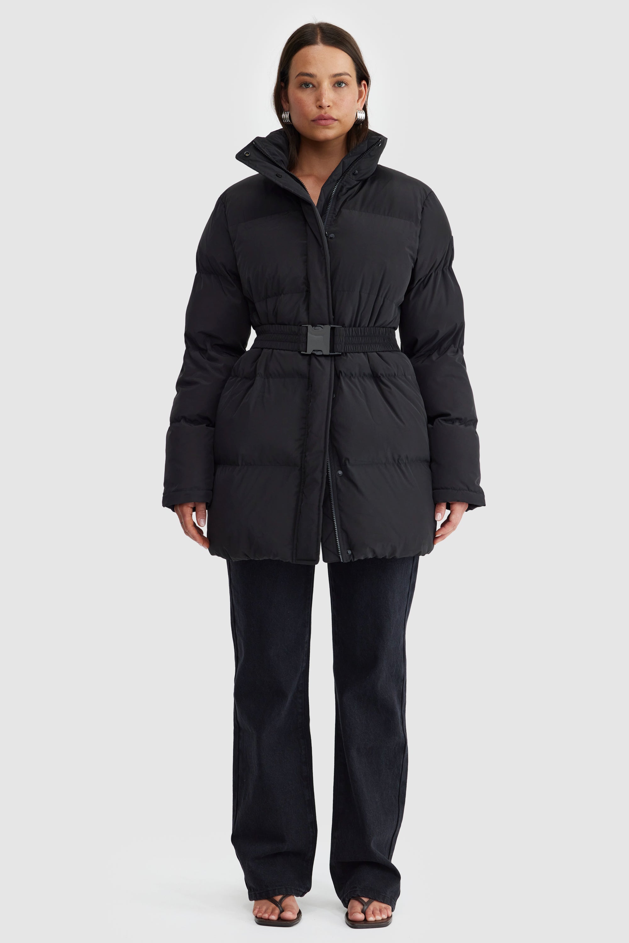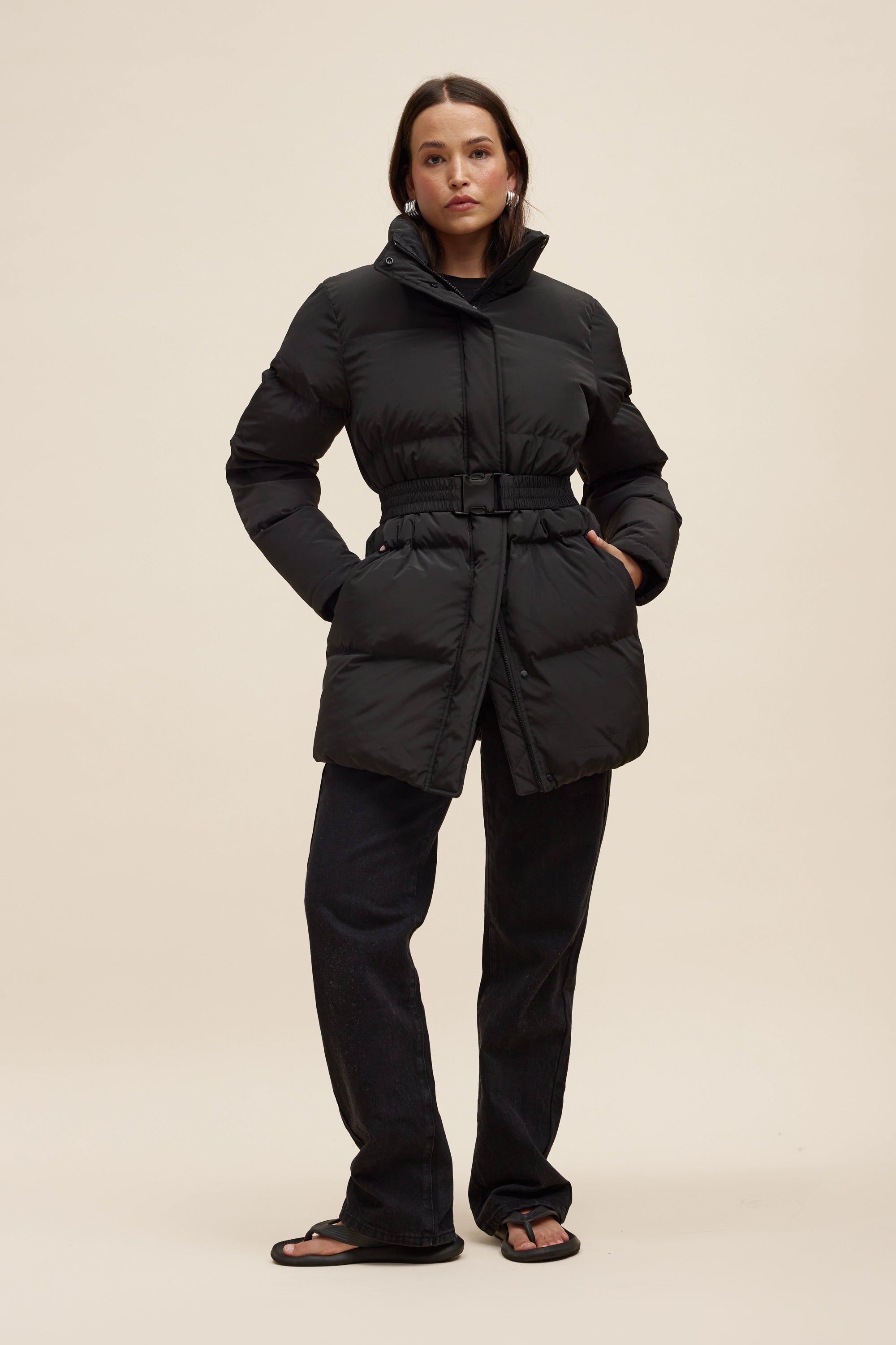 The Monty Belted Mid Length Puffer Jacket brings a refined edge to winter dressing. Designed with a flattering thigh-length silhouette and removable belt, it offers both warmth and versatility. Crafted from water-resistant fabrication with thick wadding, it’s finished with functional details to keep you comfortable through the cooler months.