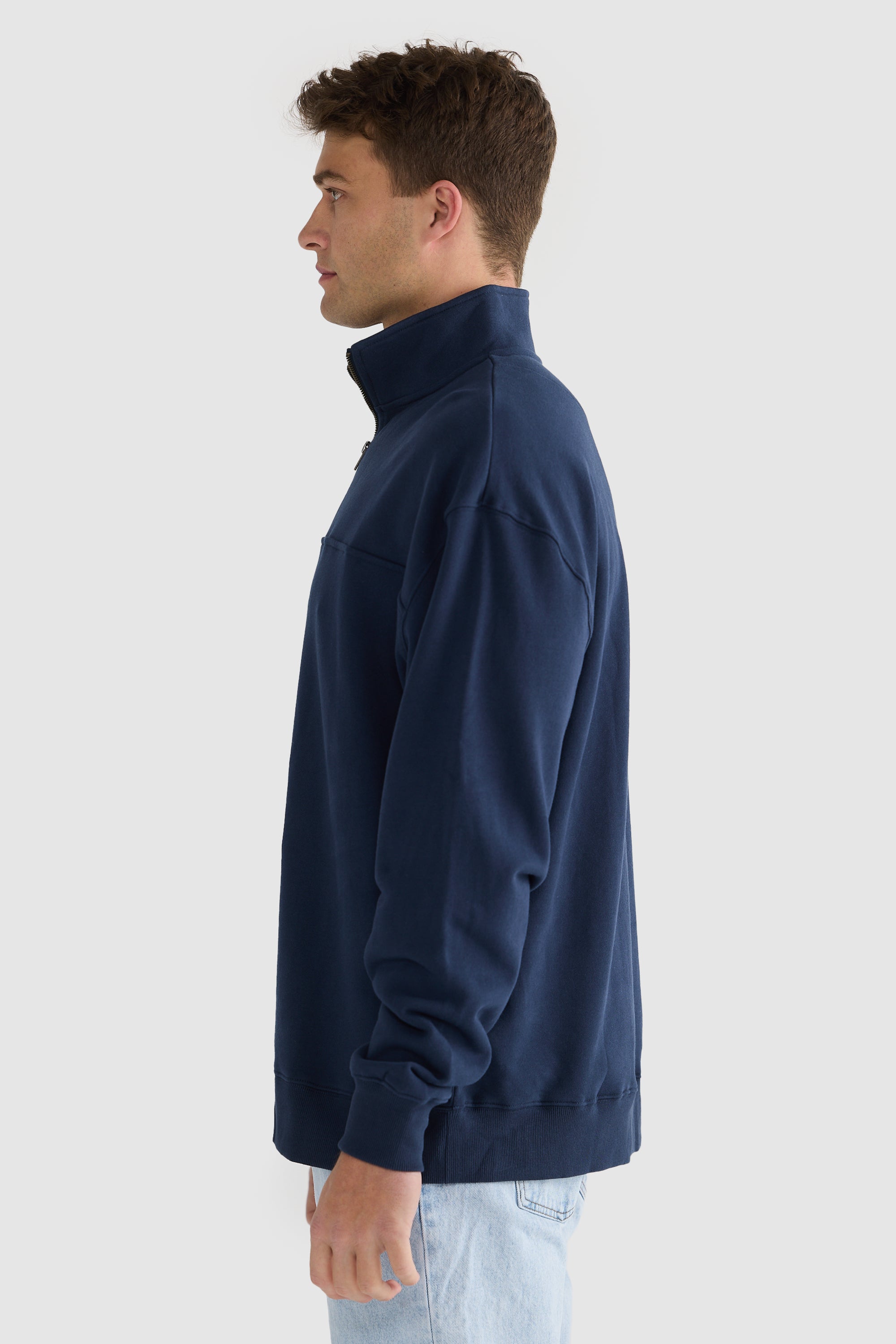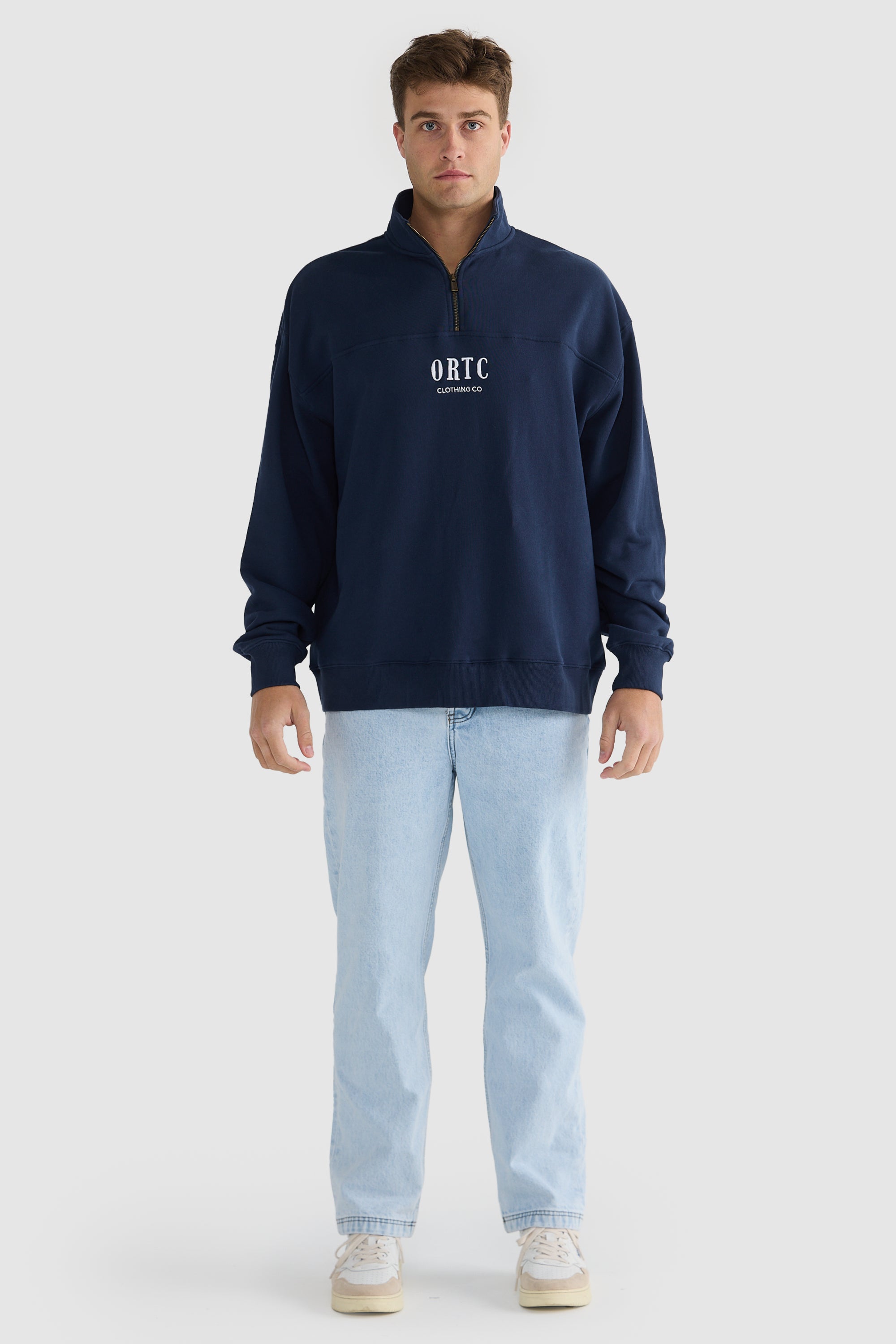 Introducing the Oversized Logo Quarter Zip. With the new embroidered logo, it has all the same quality and feel as our quarter zips but with a fresh new look. Made from a mid weight french terry and garment washed to provide a super soft and worn in feel, it features our classic ORTC CLOTHING CO  in a new embroidered look with brass coloured zipper and ribbed cuffs and hemline.