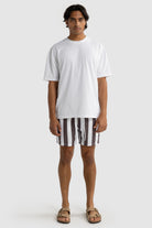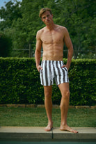 The Portsea Sage Swim Shorts are the perfect addition to your summer wardrobe. Made from 100% Recycled Polyester, these mid-length shorts are quick-drying and lightweight. The elastic waistband with drawstring provides an adjustable fit, while internal fine mesh briefs provide extra comfort. Pair with one of our Box Logo