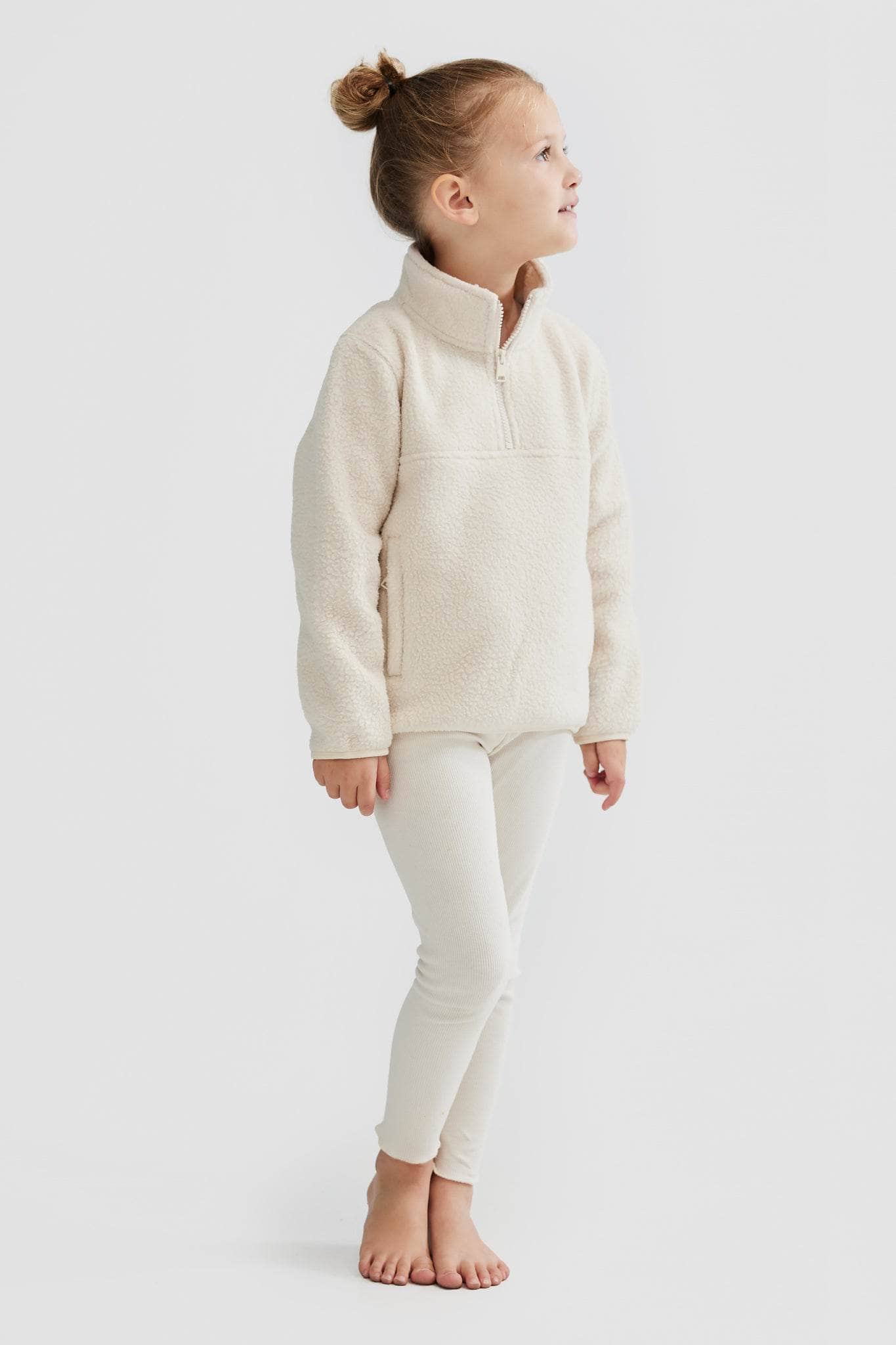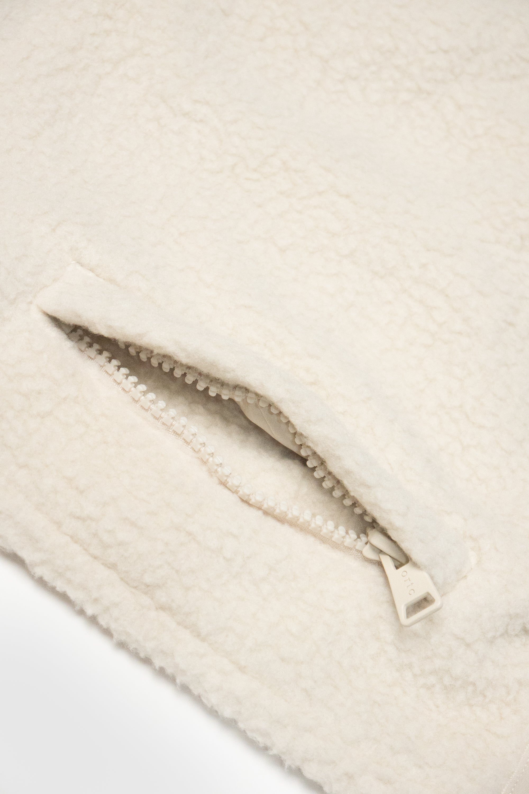Match with your mini and keep warm in style with the Jnr Sherpa Fleece Quarter Zip Natural. Featuring a sherpa fleece shell with a cozy polar fleece internal lining, this cuddly quarter zip sweater comes with zip up side pockets and a woven label with the ORTC classic logo. This particular style runs small, we suggest sizing up.