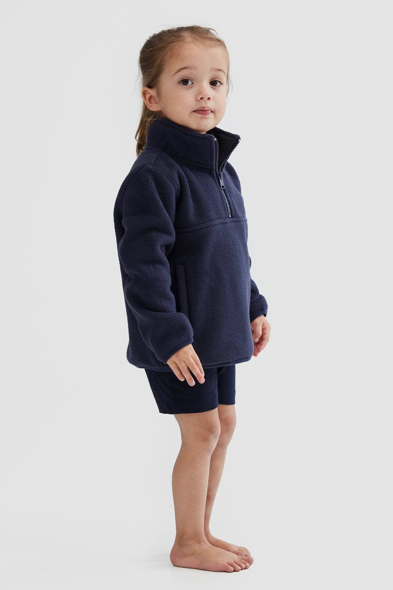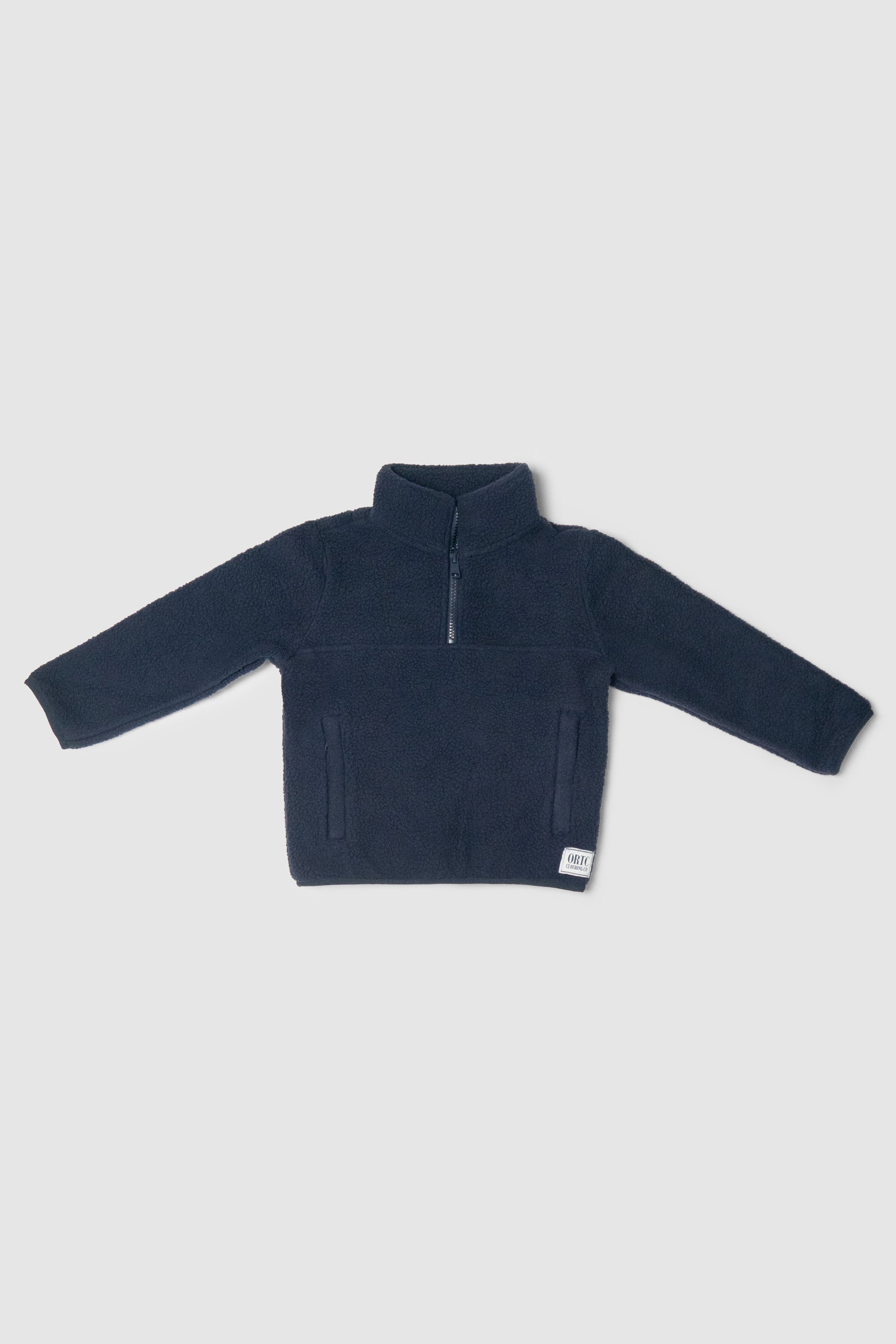 Match with your mini and keep warm in style with the Jnr Sherpa Fleece Quarter Zip Navy. Featuring a sherpa fleece shell with a cozy polar fleece internal lining, this cuddly quarter zip sweater comes with zip up side pockets and a woven label with the ORTC classic logo. This particular style runs small, we suggest sizing up.