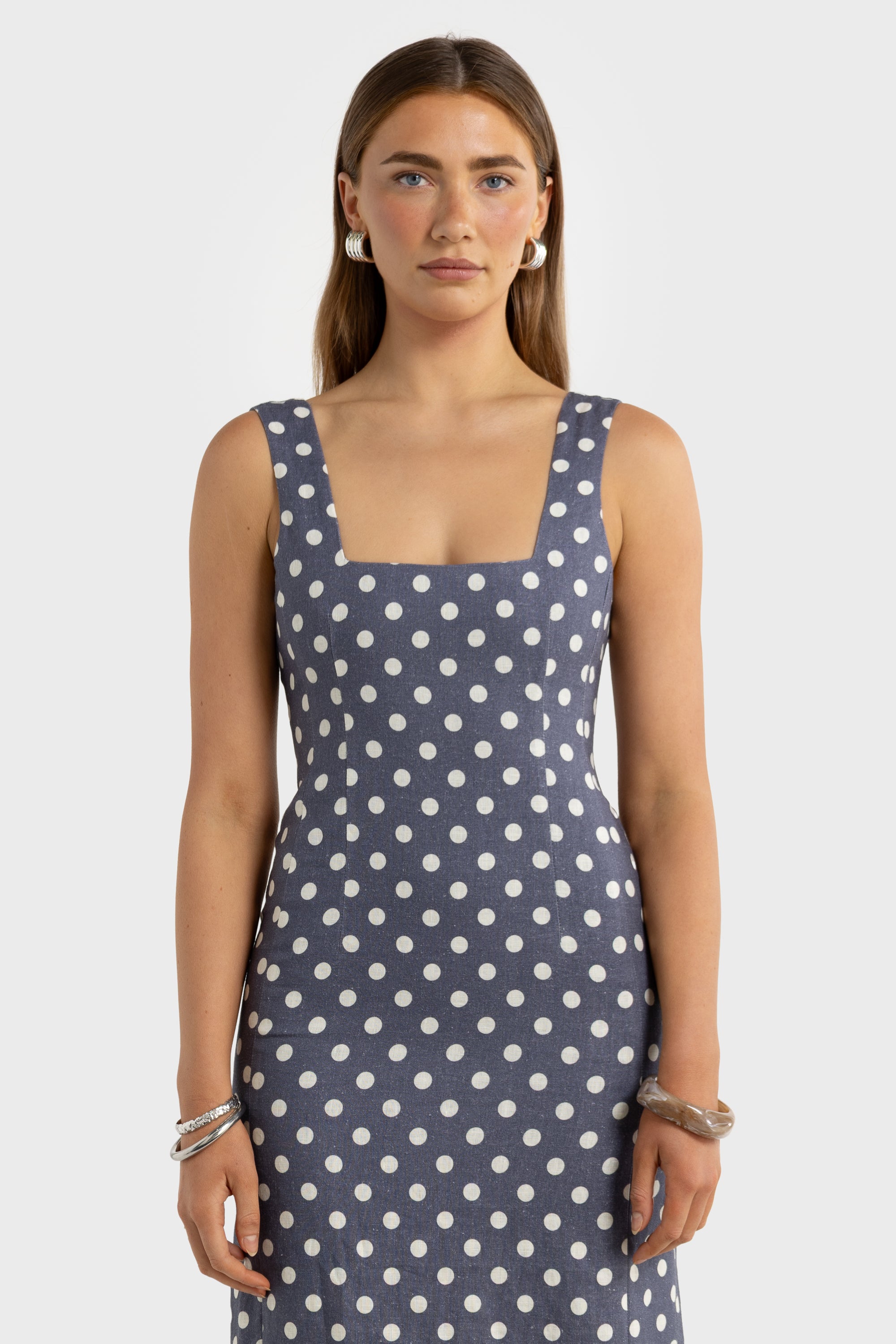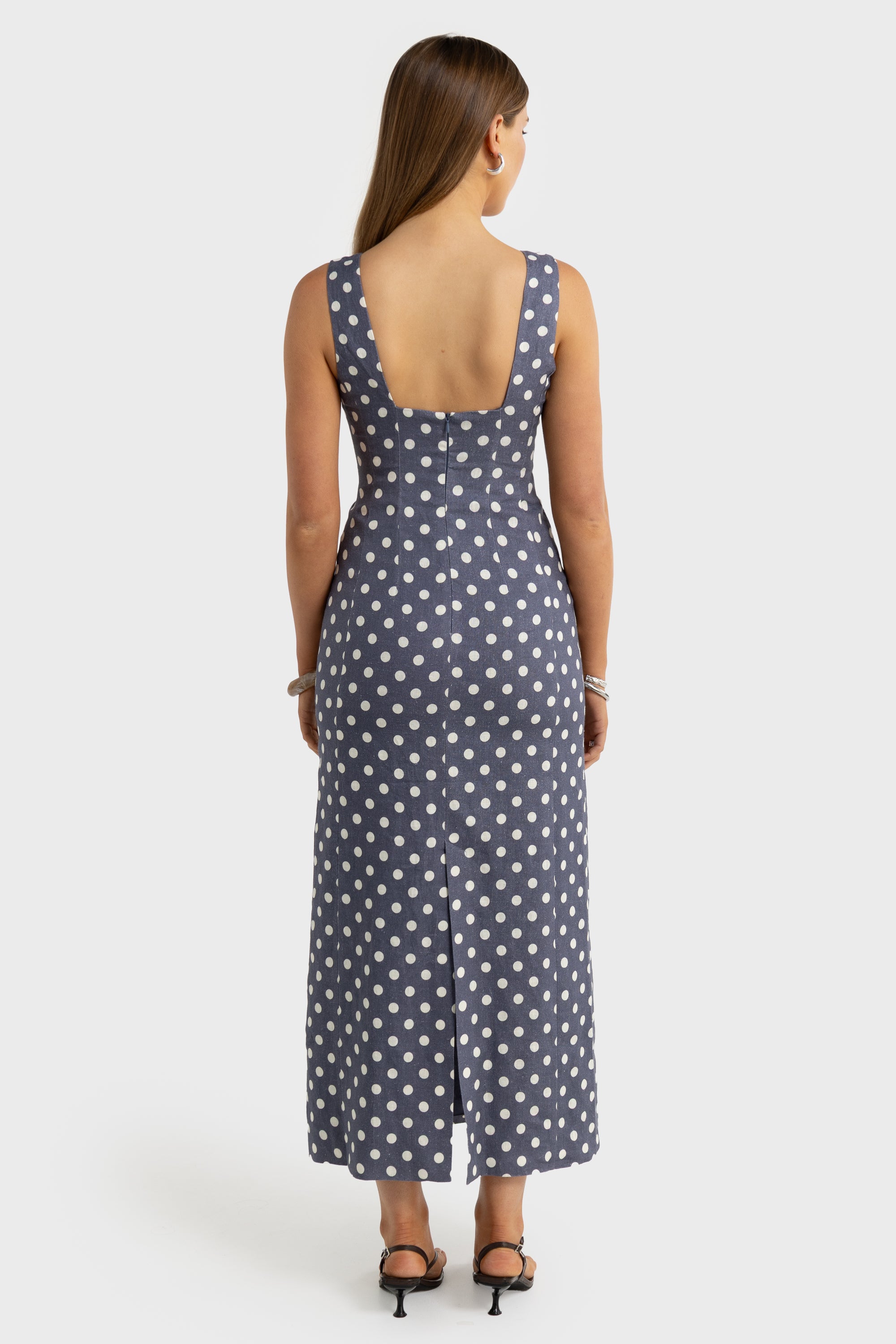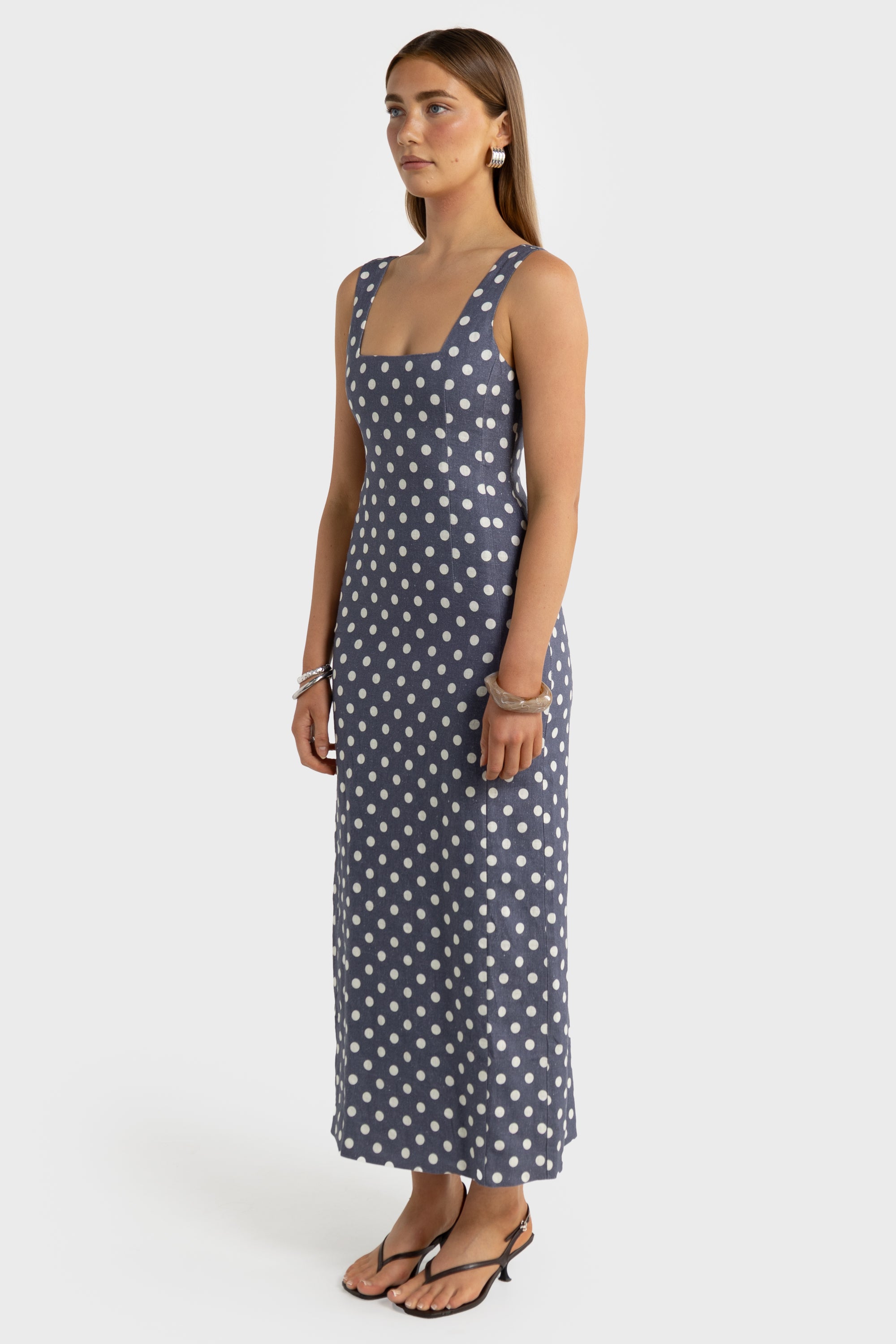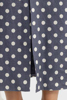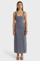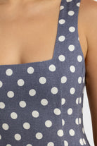 Zoey Linen Full Length Dress Harbour Blue Polkadot